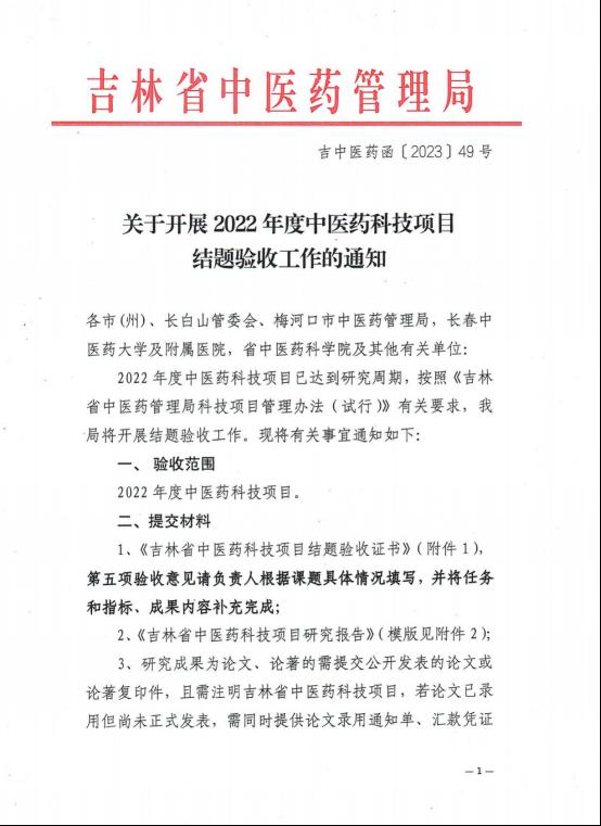 吉林省中医药管理局关于开展2022年度中医药科技项目结题验收的通知