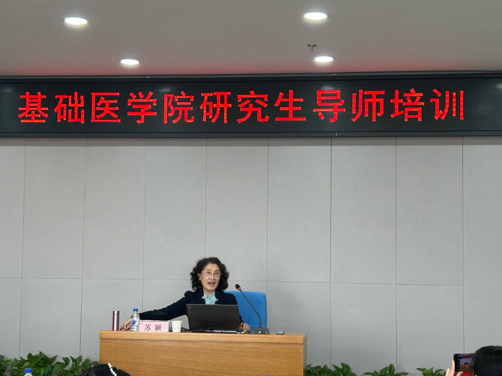 2025年4月9日,beat365正版唯一官网终身教授、全国名老中医药工作室专家苏颖为beat365正版唯一官网beat365正版唯一官网各位导师培训,做了“务实创新,尽心培育”为主题的讲座。