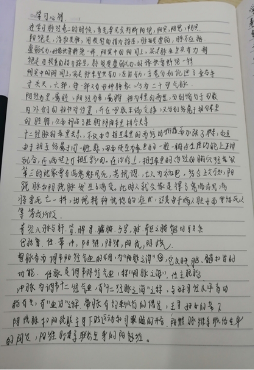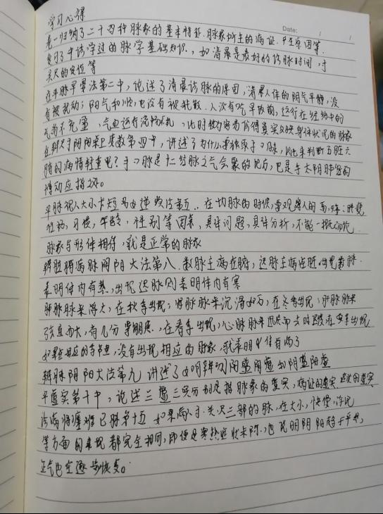 8.彭杰浩收获:中医学是一门讲究整体的学说,在分析疾病状态时却又极为详细,脉象可以分为三部九侯,病症可以分为不同的阶段,治病讲究天人相应,而这些都需要扎实的基础以及丰富的临床经验作为基础。在用药方面,要对药物功效有足够的了解,有足够细致的划分,这样才能用得足够准确,在顾及药物疗效的同时,还要顾及病人的感受。